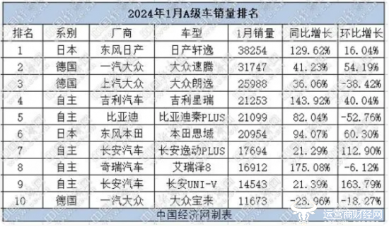 据中国经济网数据显示,2024年1月,吉利星瑞销量为21253辆,同比暴增143.92%,环比增长40.04%,实现双增长。在A级车销量排名中居于第四位。比亚迪秦PLUS以21099辆的成绩排在第五位。吉利星瑞虽然领先于比亚迪秦PLUS,但是优势不大。