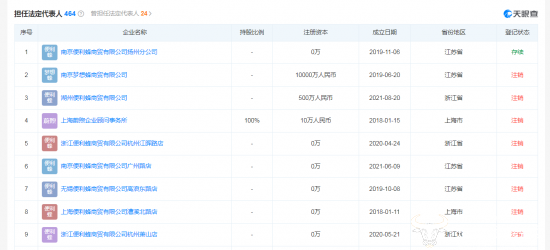 值得一提的是,薛恩远在2022年及以后先后卸任了便利蜂多家门店的职务。天眼查显示,他如今只担任了南京便利蜂商贸有限公司扬州分公司的法定代表人,而他曾负责的多家门店现已显示注销。