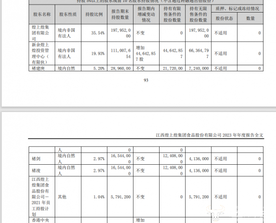 当年的招股书显示,煌上煌集团持有公司发行前69.42%的股权,为公司的控股股东。公司实际控制人为徐桂芬家族,家族成员包括徐桂芬女士、褚建庚先生、褚浚先生和褚剑先生四人,直接和间接合计持有本公司86.11%的股份。