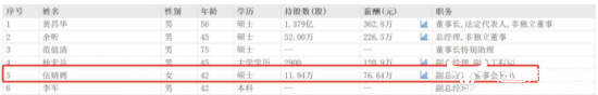 根据东方财富网数据显示,伍婧娉的年薪为76.64万,而另一位副总桂宏兵却达到了120.9万,尽管两者都是副总,但其薪酬差距接近一倍。