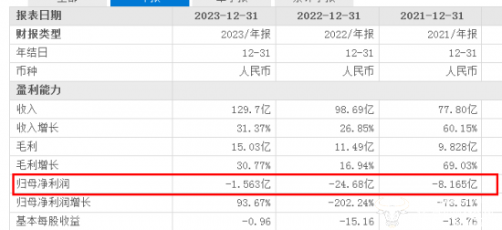 上市首年,爱回收归母净利润亏损8.165亿元人民币(下同);2022年,公司亏损还加剧了,归母净利润亏损24.68亿元,同比下降202.24%;直至去年,爱回收亏损收窄至1.563亿元,三年亏损累计超34亿元。不过,总体上爱回收2023年业绩已有好转。2023年全年营收129.358亿元同比增长31.4%。