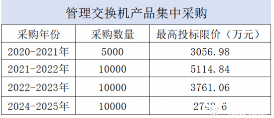 从近几年管理交换机采购项目的规模来看,此次招标规模无明显变化,但最高投标限价明显降低。
