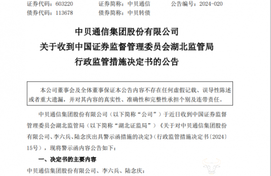 值得关注的是,2024年2月20日,湖北证监局对中贝通信董事长李六兵和董秘陆念庆进行了通报批评,原因是信息披露不及时、不公平以及对外投资事项未履行披露义务和决策程序。尽管董事长李六兵对此提起申辩,称并非主观故意违规,但上交所并没有接受这个理由。