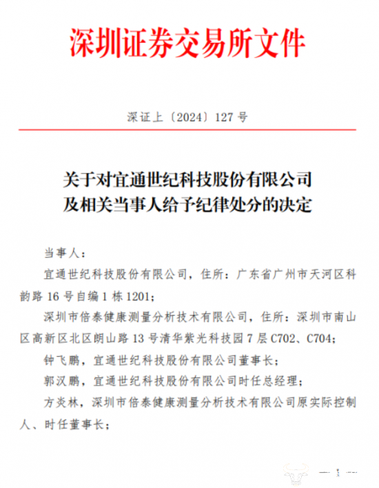值得注意的是,2024年2月9日,深圳证券交易所发布了《关于对宜通世纪科技股份有限公司及相关当事人给予纪律处分的决定》。