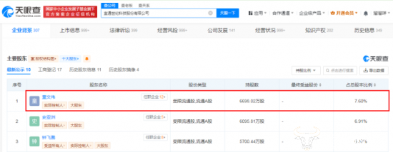 天眼查显示,童文伟持股数6698.02万股,占总股本比例7.60%。如果按照2024年4月2日收盘价4.38元计算,童文伟的身价约2.92亿。