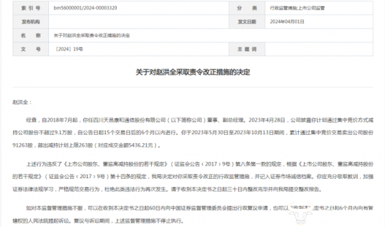目前,赵洪全已对此向公司董事会及广大投资者致歉,承诺将超额减持的263股公司股份进行回购,并将对应获得的收益上交公司处理。