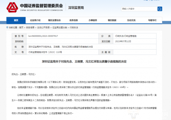 值得一提的是,去年7月,王晓雯等人还曾收到深圳证监局出具的行政监管措施决定书。