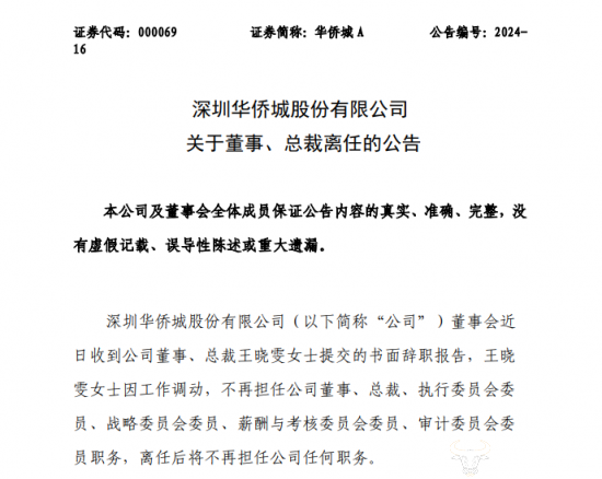 近日,华侨城发布一则《关于董事、总裁离任的公告》,王晓雯因工作调动,辞去公司所有职务,空缺的总裁之位暂由公司副董事长刘凤喜代行,王晓雯辞职的背后是否还有隐情呢?
