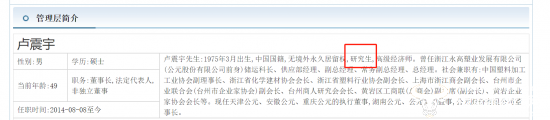 1997年,卢震宇进入公元股份前身——浙江永高塑业发展有限公司。当时他22岁,很显然,他的研究生毕业不是第一学历。而且,根据国家相关规定,学位和学历是两码事,拥有研究生毕业证才拥有研究生学历,这需要参加全国研究生统一入学考试。而高级工商管理硕士等文凭只能证明有硕士学位。