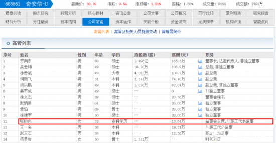 张继冉年仅32岁,又只是高职院校的大专毕业,在高学历人才扎堆的奇安信竟然成了监事会主席,这有点不可思议。