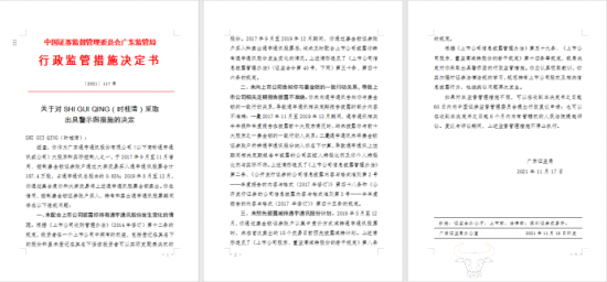 期间,时桂清一未配合上市公司披露自己持有通宇通讯股份发生变化的情况;二未向上市公司告知自己与姜金锁的一致行动关系,导致上市公司相关定期报告披露不准确;三未预先披露减持通宇通讯股份计划。