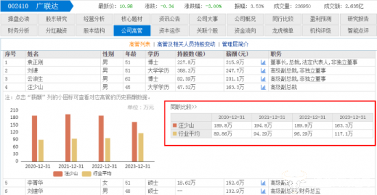据东方财富网显示,2023年汪少山的薪酬是163.3万,已经不菲,但实际上与他前一年薪酬相比下降了二十几万。显然,他的薪酬远不如高级副总裁刘谦,刘谦的年度薪酬是247.7万元。
