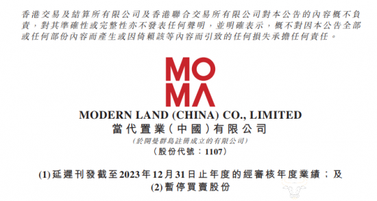 2022年3月底,当代置业发布公告称,因为流动性危机以致人员变动以及新冠疫情等原因,公司延迟刊发2021年度业绩,并将于4月1日上午9时停牌。