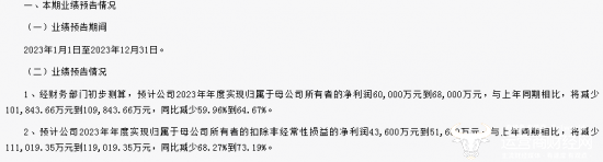 科沃斯发布的2023年年度业绩预减公告称,预计归母净利润6亿元至6.8亿元,同比减少59.96%到64.67%。扣非后净利润4.36亿元至5.16亿元,同比减少68.27%到73.19%。