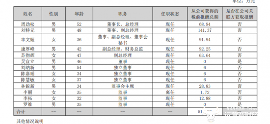 此外,副总刘特元虽然没涨薪反而降薪了0.08万,但他去年的薪酬为141.37万,是公司高管当中最多的,甚至是董事长周劲松薪酬的两倍多。