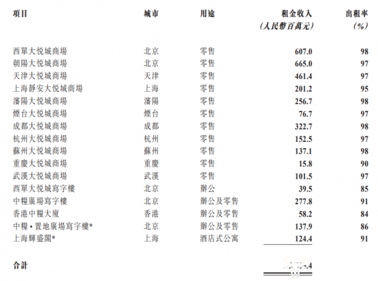 运营商财经网注意到,大悦城旗下的商场出租率都挺高,北京西单大悦城商场、沈阳大悦城商场、成都大悦城商场、苏州大悦城商场的出租率都高达98%。