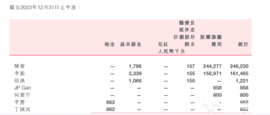 年报显示,陈睿2023年度总共从哔哩哔哩获得超2.46亿元,但这里面单股权激励费用就超过了2.44亿元。他的基本薪金只有179.6万元,此外还有15.7万的“医疗及退休金计划提存开支”。