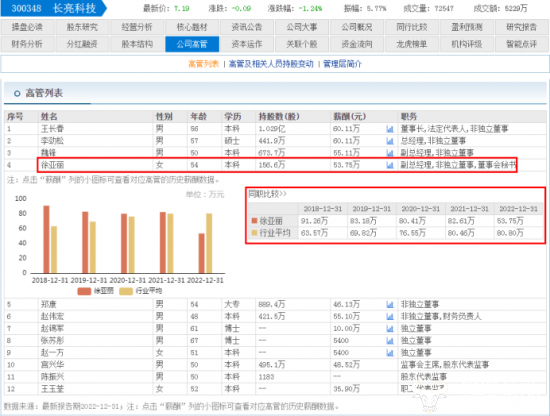 东方财富网显示,徐亚丽2022年薪酬为53.75万,在高管行列中并不突出。不过值得注意的是,她2022年的薪酬与2021年的82.61万薪酬相比,呈现出了大幅下降的趋势,下降了28.86万。而在此之前,自2017年的97.81万开始,徐亚丽薪酬就一直在下降,只在2021年较之前小幅度上涨了2.2万。