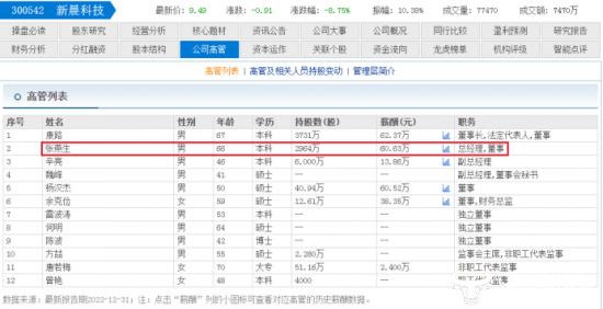 此外,张燕生在高管中的持股数也位居前列,达到了2964万。如果根据2024年4月15日新晨科技的收盘价10.4元计算,张燕生这部分的持股数身价约为3.08亿。