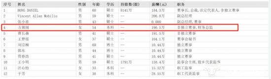 据东方财富网显示,方蓉闽的薪酬是196.5万,仅次于公司副总Vince Mobilio,他的薪酬是206.8万。值得一提的是,他是澳洲子公司的营销副总。