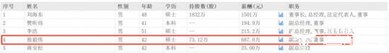 据东方财富网显示,在公司高管中,薪酬最高的便是董事长刘海东,薪酬为1501万;其次就是敖毅伟,他的薪酬是687万;副总樊昕炜、李浩的薪酬分别是194.9万、215.2万。敖毅伟担任副总的时间不如另外二人,薪酬却远超其余副总。