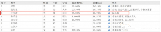 在东方财富网披露的高管薪酬中,王守波的薪酬是73.7万,财务负责人陈乐乐的薪酬是86.57万,董秘陈艳薪酬为77.36万,与其他高管相比,王守波的薪酬不算高。