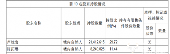 还值得一提的是,创始人、董事长卢竑岩直接持有公司29.72%股份,约2141.26万股,他一个人就拿走约1.5亿元。