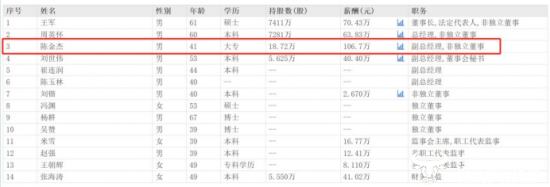 据东方财富网显示,陈金杰的薪酬十分不菲,为106.7万,在公司高管中最高,其次是董事长王军,他的薪酬是70.43万。总经理周英怀的薪酬为63.83万,公司的另一位副总刘世伟的薪酬是40.4万,与陈金杰差距较大。