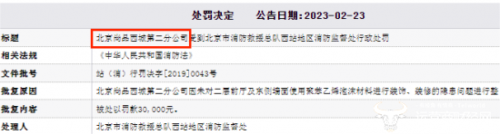 值得注意的是,去年2月,北京尚品西城第二分公司受到了来自北京市消防救援总队西站地区消防监督处的行政处罚,被处以罚款3万元。