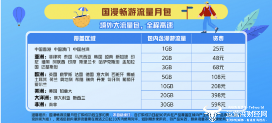 25元1GB、108元5GB、398元20GB、598元30GB……多个档位任您挑选,而且最重要的是,这款国漫畅流量月包不仅能在38个国家和地区通用,包内漫游流量激活后有效期有30天之久哟!想要环球深度游玩的小伙伴也可以无惧限制,随心畅玩。
