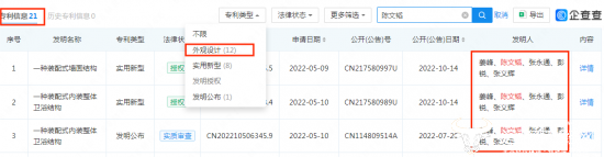 值得一提的是,身为高管的陈文韬还是多项专利的发明人之一。截至今年4月15日,企查查公开的杰恩设计专利信息中有21项是陈文韬参与发明,其中外观设计型专利占12个。