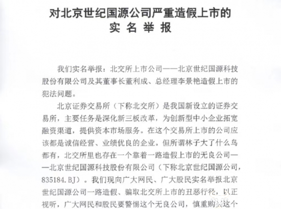 2023年,一则微博曝光实名举报信在金融市场掀起波浪。举报信来自国源科技曾经的合作伙伴中闰科技,举报内容包含对国源科技私刻多个政府单位公章、制作虚假询证函虚增收入3528万元等多项控诉。