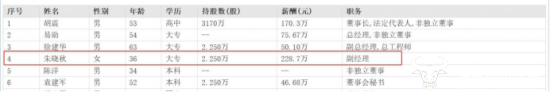 据东方财富网显示,在公司高管中,朱晓秋是唯一一位女高管,并且是年龄最小的。但她的薪酬却不低,她以228.7万的年薪位列第一,其次是董事长胡震,他的年薪是170.3万。