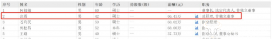 据东方财富网显示,在公司高管中,张震的薪酬是66.45万,相比之下不如另外两位副总仓利民、郭松昌,这两人的年度薪酬分别是68.02万、68万。