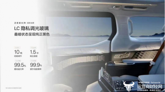 BOE(京东方)光幕技术(LC)室温调节速率为0.16s的毫秒级响应,可以支持-20℃到85℃的宽温,调节温度越高,调节速度越快,在同行业调光技术内处于领先地位。在隐私防眩方面,光幕技术(LC)具有单向透过性优势,可最大程度保护车内隐私,通过对不同灰阶的精准调节可避免强光直射或建筑反光对乘客眼睛的伤害,防止眩光。在隔热防护方面,光幕技术(LC)可隔绝99.9%紫外线,最暗状态下可隔绝99.5%的可见光,对太阳光的遮蔽率达90%。相较于其他调光技术的110V电压,京东方光幕技术(LC)采用12V安全低电压,不仅功耗更低也更加安全。本届车展现场,红旗H9全球首发轿车就搭载了BOE(京东方)光幕技术(LC),此外极氪近期推出的009光辉还成为全球首个搭载该技术的新能源豪华MPV。