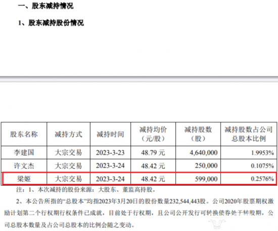 此外,值得注意的是,在2023年3月24日,梁姬因股票期权行权资金需要以大宗交易的方式减持股份59.9万股,交易均价为48.42元,减持股数占公司总股本的0.2576%,根据计算可知此次减持股份,梁姬共套现约2900万。同时梁姬自愿承诺本次减持完成后半年内不以大宗交易或集中竞价方式减持其持有的润建股份股票。