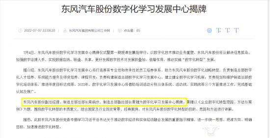 值得一提的是,黄臻能够上任公司副总经理似乎早有迹象。据东风汽车集团有限公司工会资料,2022年,黄臻曾和时任东风汽车股份副总经理的周晓伏一同参加揭牌活动。当时,周晓伏还是公司制造总部总部长,而黄臻是制造总部副总部长,是周晓伏的直属部下。