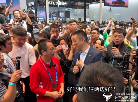 一开始,李斌穿过层层人群接待周鸿祎,一遍遍喊着“来来来,让一下让一下”,等接到周鸿祎后就感慨说,“老周,你这流量太高了”。周鸿祎一直被人围着拍照,显得有些僵硬和局促,谦让道,“没有没有,没有你高”。随后,李斌就开始向周鸿祎介绍蔚来汽车的性能。