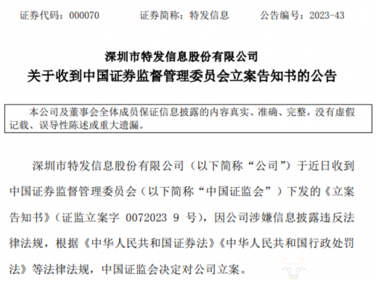 值得关注的是,2023年5月,特发信息收到了来自中国证券监督管理委员会的立案告知书,此次立案调查的原因是特发信息涉嫌信息披露违反法律法规。不过后续进展,特发信息并未进一步公布。