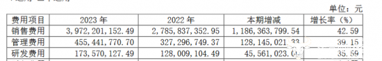 2022年时,珀莱雅销售费用27.86亿元,仅仅一年就增加了11.86亿,同比增长42.59%。