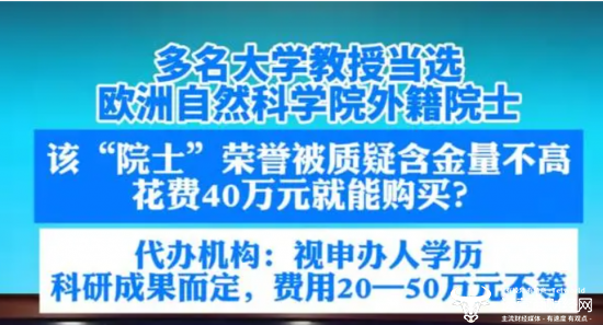 根据多个媒体报道,一场“假院士闹剧”正在被揭发,一家命为“欧洲自然科学院”的假院士证书被指花钱就能买到,可是,一些高校教师、医院的医生却自己宣传获得了这个”院士“的称号。