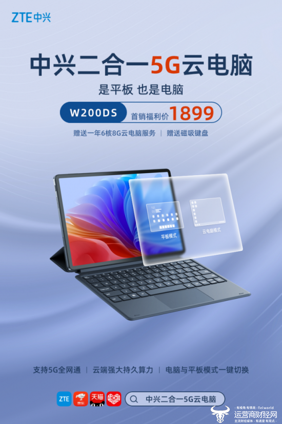 5月10日,中兴二合一5G云电脑“逍遥”系列在京东、天猫、拼多多、中兴商城正式全面开售。该产品支持本地/云端双模式,是平板亦是电脑,是Android亦是Windows,用户可同时享有Android平板和Windows云电脑,一键切换,随心选择。