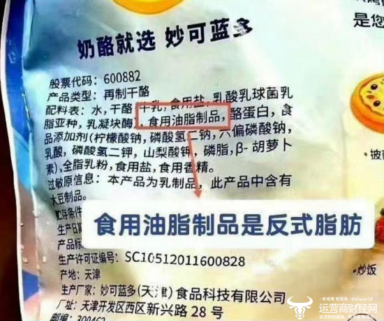 从定义上看,食用油脂制品并不完全等同于反式脂肪酸,但妙可蓝多产品当中究竟是否含有反式脂肪酸,截至目前官方还未给出声明进行回应。