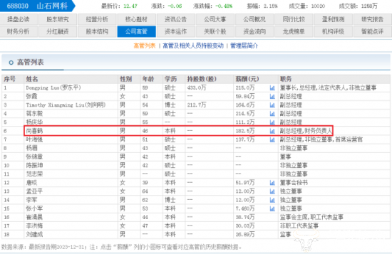 东方财富网显示,2023年尚喜鹤的薪酬为182.5万,在山石网科披露出的高管薪酬中位居第三,仅次于董事长罗东平的215万和副总经理蒋东毅的214.5万。