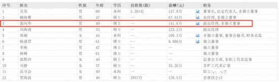 据东方财富网显示,在公司高管中披露的薪酬中,郭向华以141.6万的年薪位列第一,远超董事长吴英的127.8万以及总经理的67.51万。