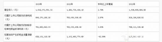 值得一提的是,去年公司实现营收约15.24亿元,同比增长2.79%;归母净利润约8.06亿元,同比增长2.97%;扣非后净利润约7.92亿元,同比增长3.93%。