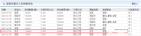 此外,值得关注的是,2023年12月,李东以竞价交易的方式减持股份14.06万股,交易均价为7.63元。根据交易均价计算可知,此次减持股份李东共套现约107.3万元。