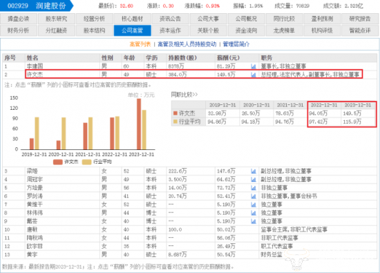东方财富网显示,2023年许文杰的薪酬为149.5万,相较于2022年的94.05万,许文杰的薪酬上涨了55.45万。此外,许文杰还是润建股份披露出的高管薪酬中最高的,而董事长李建国的薪酬为81.29万。