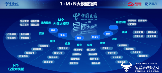 在星辰大模型矩阵中还包括有星辰视觉大模型、星辰语音大模型以及星辰多模态大模型。基于该矩阵,中国电信正积极为千行百业赋能,推动行业智能化升级。