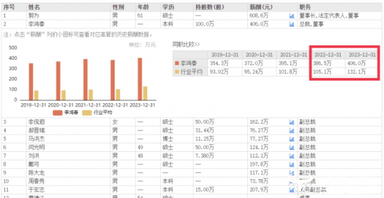 东方财富网显示,李鸿春2023年的薪酬为406万,与2022年的386.5万相比,增长了19.5万,在神州信息高管之中位居第二,仅次于董事长郭为。而常务副总裁于宏志的薪酬也只有207.9万,高出了将近200万。在职20多年,李鸿春取得的这一薪酬已经十分可观了。